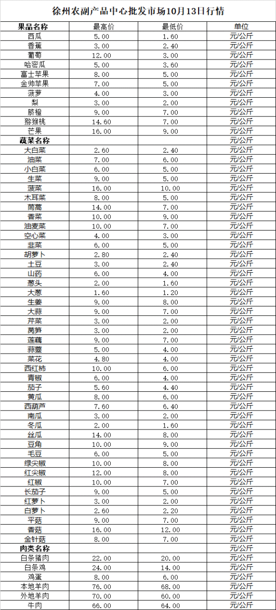 徐州农副产品中心批发市场日常价格行情报送,价格行情包含水果、蔬菜、肉类等农副产品的批发参考价格